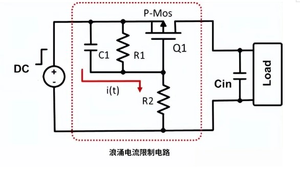 如上所述,已經列舉了2種浪涌電流方法。下面介紹使用MOS管導通電路來抑制輸入電流此外,由于MOS管的導通損耗低,使用方便。優點是零件少,缺點是有功率損耗。下面介紹有源和無源浪涌電流限制電路。