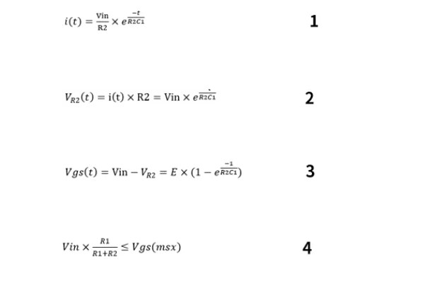 從MOS管特性描述來看,歐姆模式最適合抑制浪涌電流。至于R1、R2、C1的計算,可以用下面的公式:
